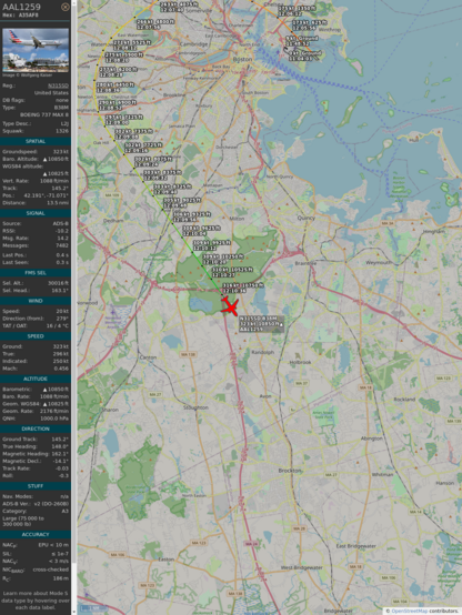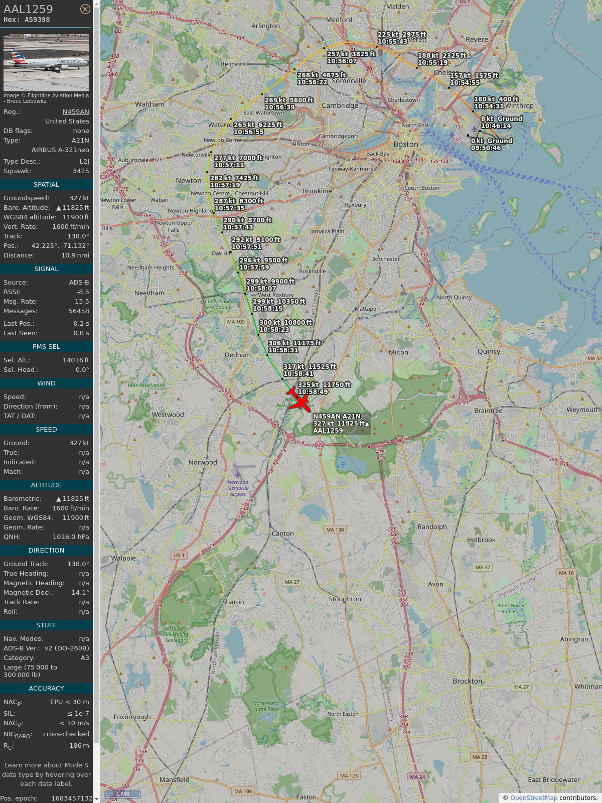 #a45316 #aal1259 #americanairlines #bos #mia #planefence #adsb