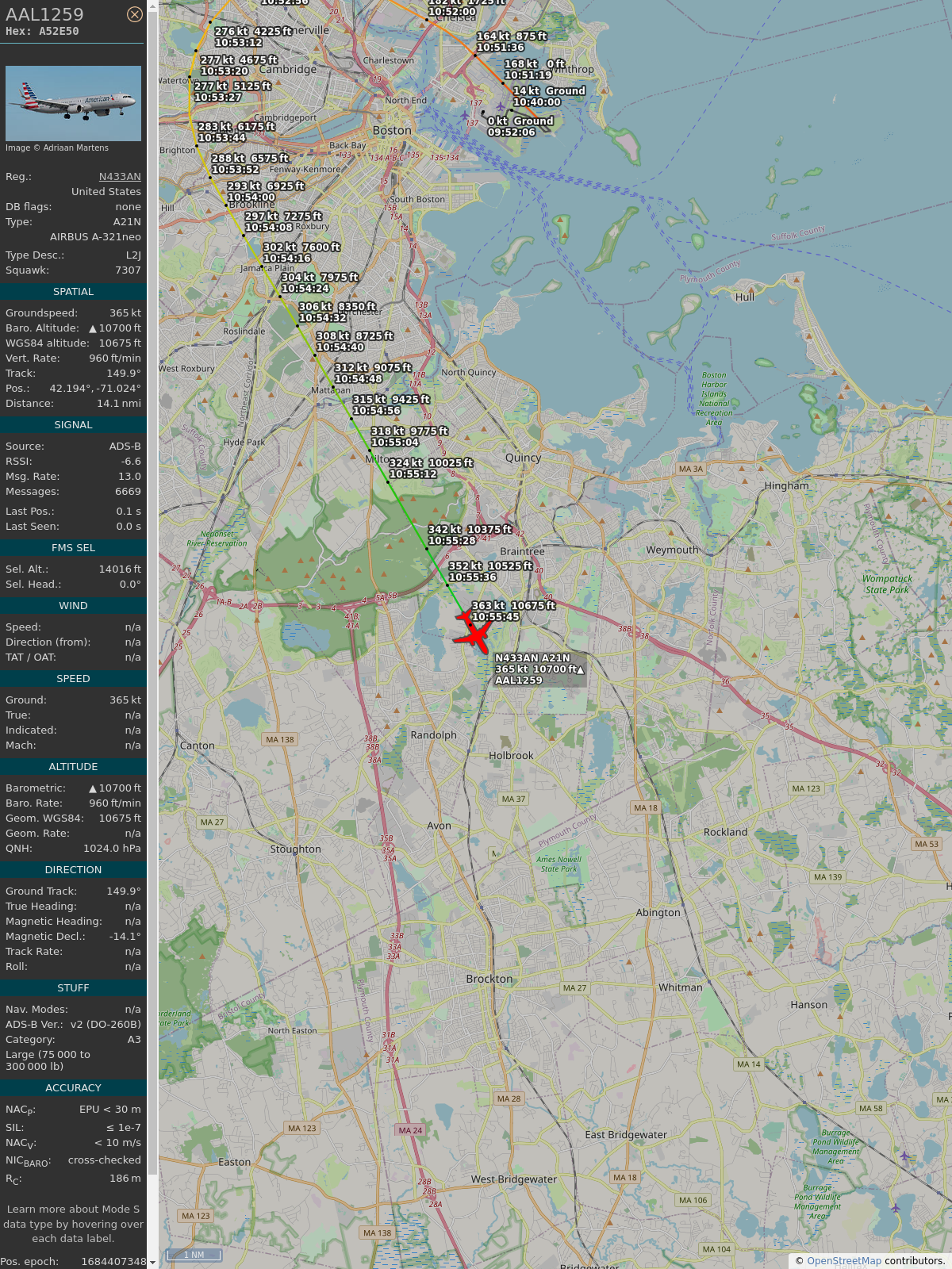 #ab5993 #aal1259 #americanairlines #bos #mia #planefence #adsb