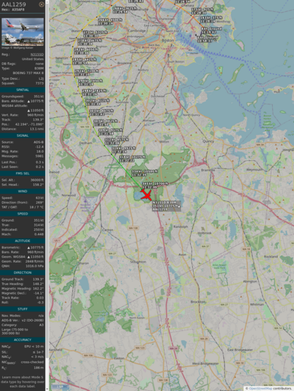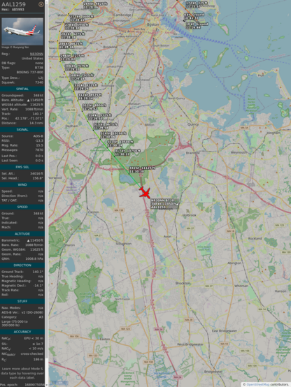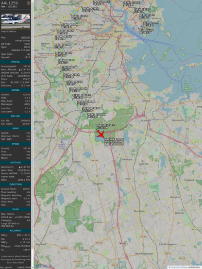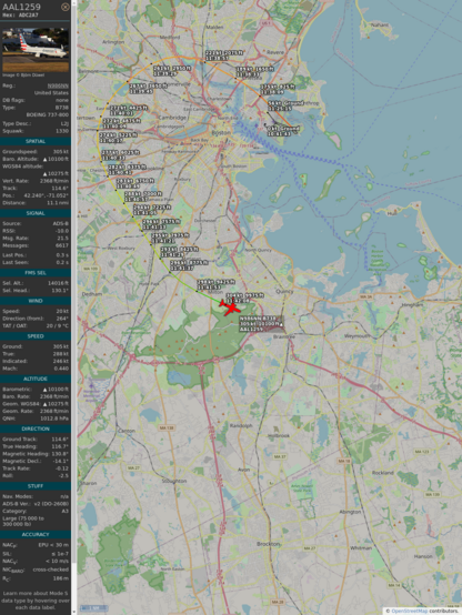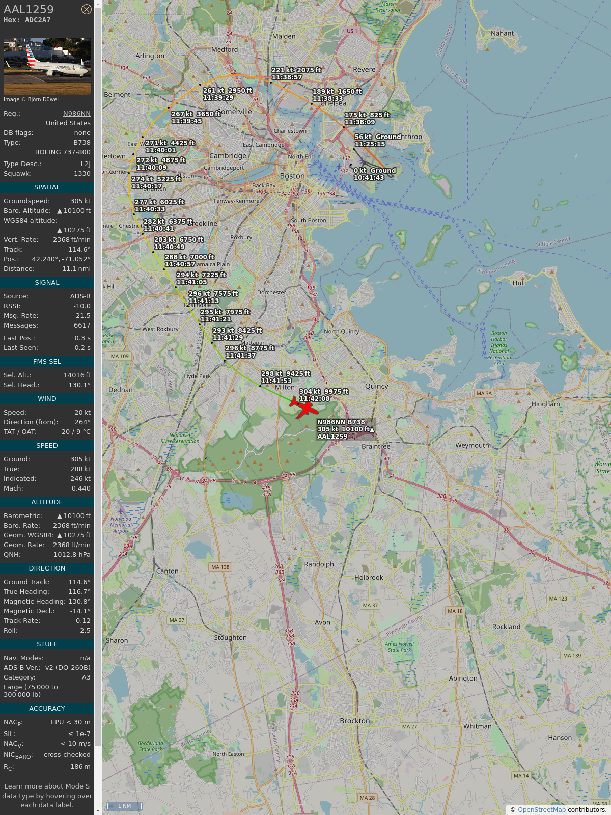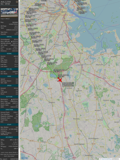 #ad5398 #aal1259 #americanairlines #bos #mia #planefence #adsb