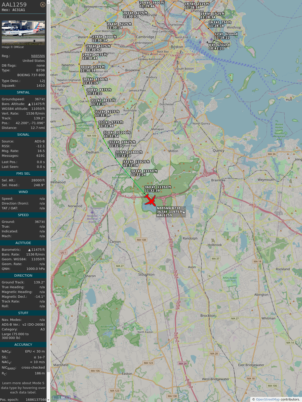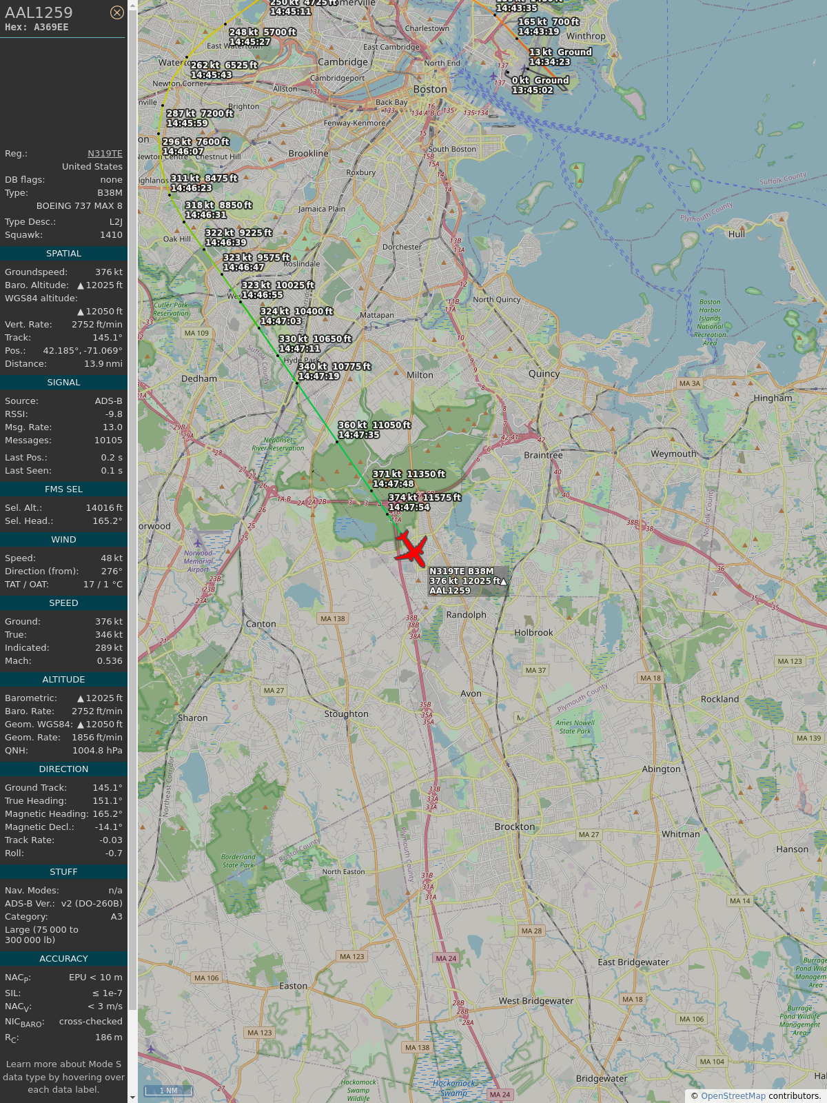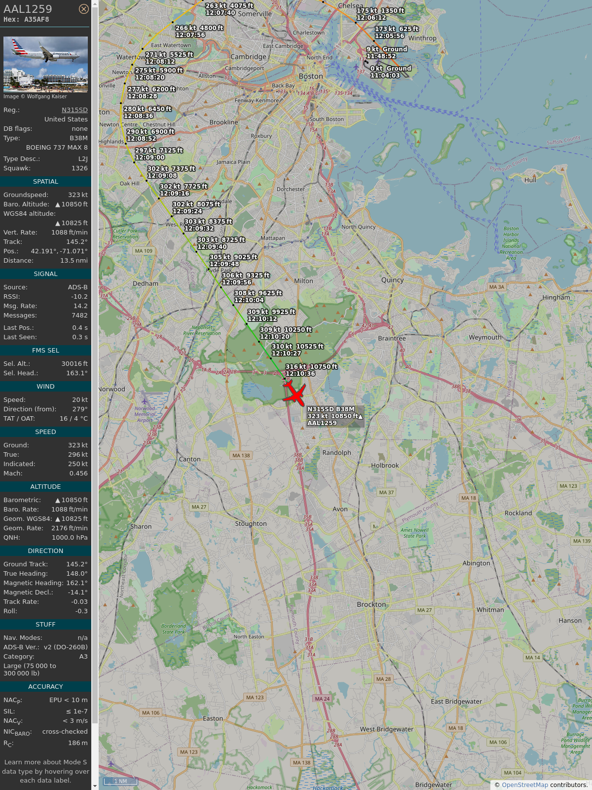 #a4acae #aal1259 #americanairlines #bos #mia #planefence #adsb