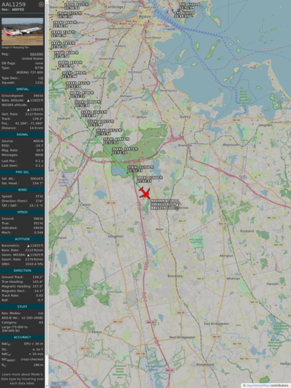 #adbb39 #aal1259 #americanairlines #bos #mia #planefence #adsb