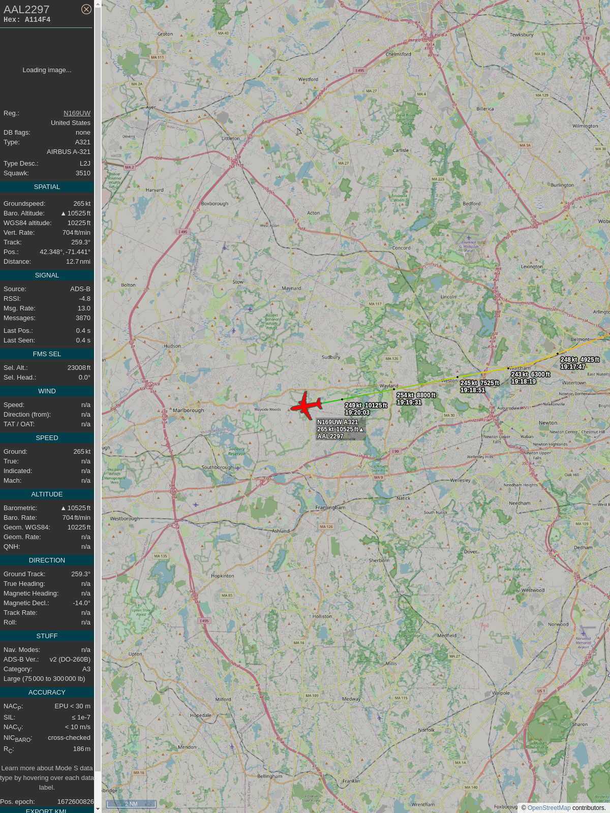#a114f4 #aal2297 #americanairlines #dfw #bos #planefence #adsb
