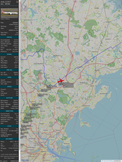#adf068 #aal2297 #americanairlines #dfw #bos #planefence #adsb