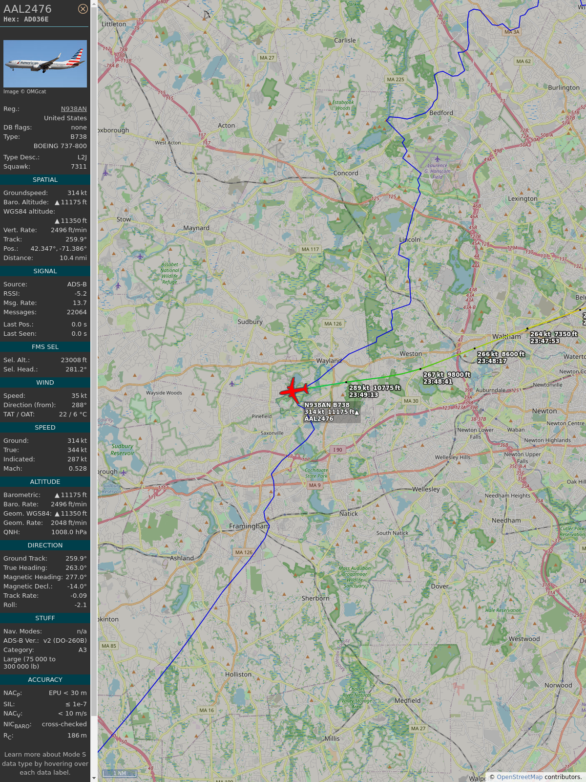 #ab34a7 #aal2476 #americanairlines #stl #bos #planefence #adsb