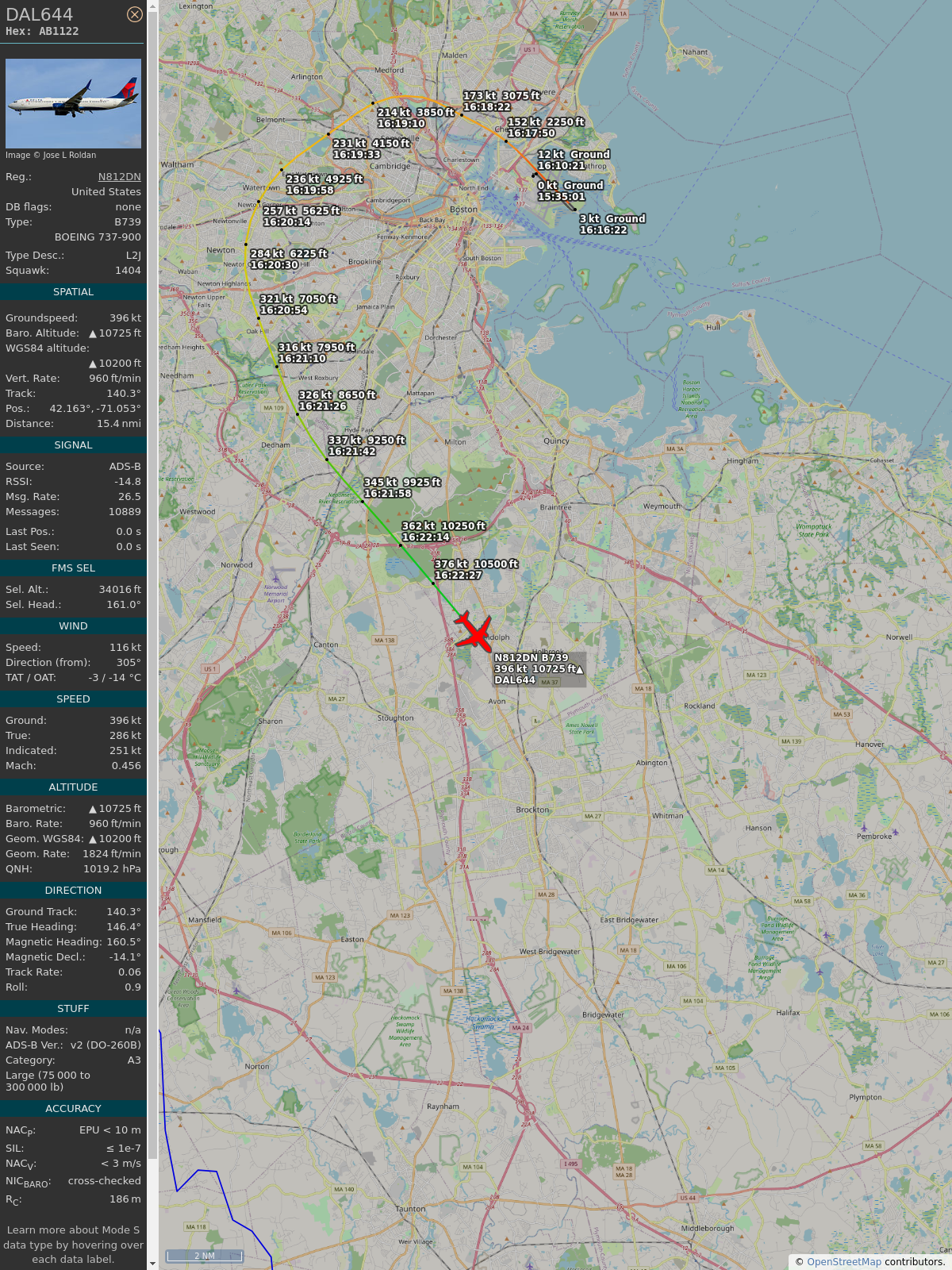 #ab1122 #dal1780 #deltaairlines #bos #sju #planefence #adsb