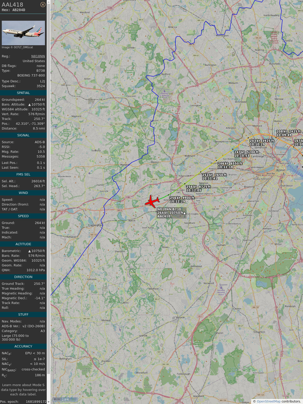 #ab284d #aal2476 #americanairlines #stl #bos #planefence #adsb