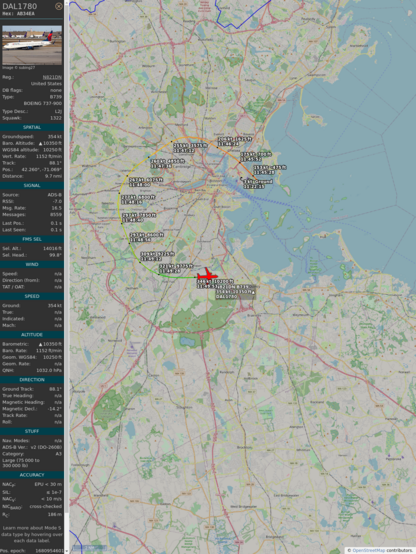 #ab34ea #dal1780 #deltaairlines #bos #sju #planefence #adsb