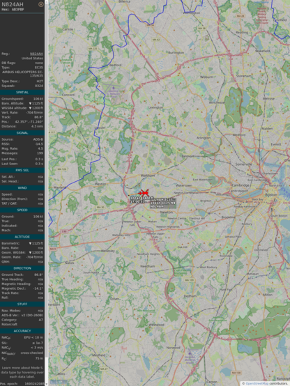 #ab3fbf #n824ah #massachusettsstatepolice #pym #planefence #adsb