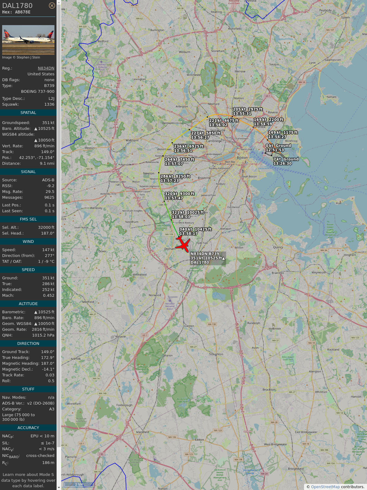 #ab678e #dal1780 #deltaairlines #bos #sju #planefence #adsb