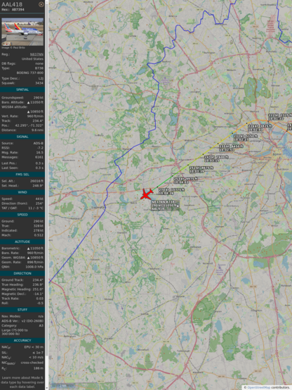 #ab7394 #aal418 #americanairlines #bos #clt #planefence #adsb
