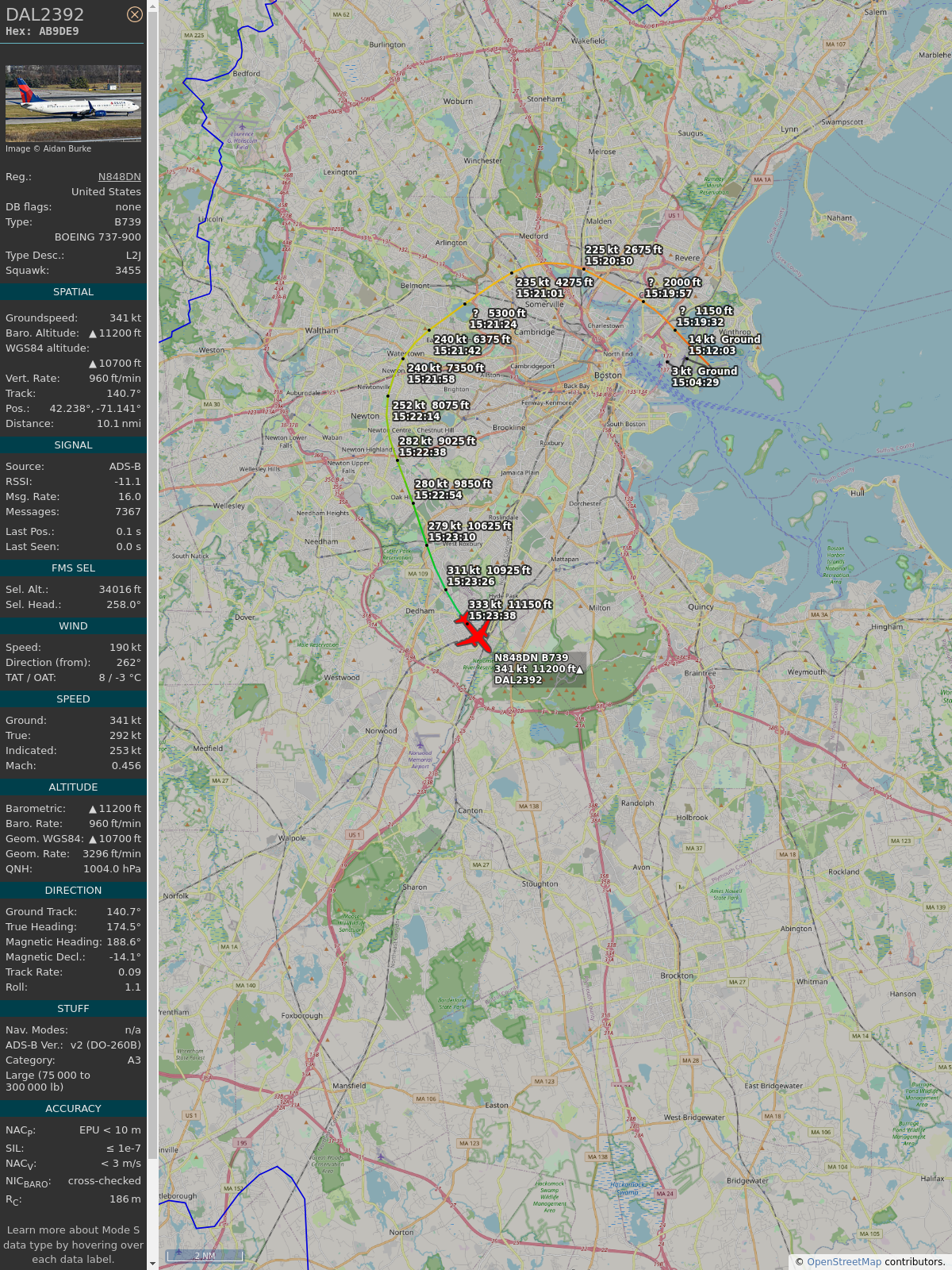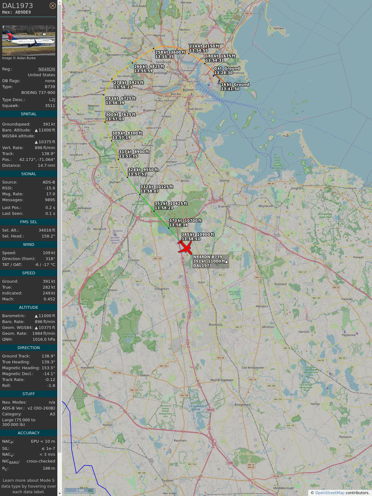 #ab9de9 #dal2392 #deltaairlines #dtw #bos #planefence #adsb
