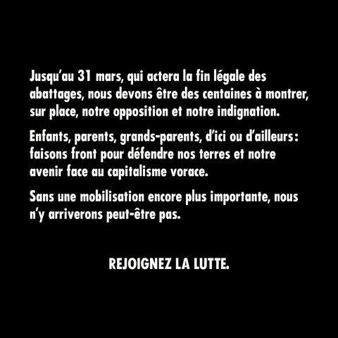 Ce mercredi nous n'étions pas assez nombreux·euses, aujourd'hui et demain (31 mars), nous avons besoin de TOUTES LES PERSONNES soucieuses de défendre le vivant !