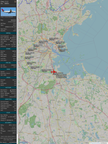 #abbee3 #dal112 #deltaairlines #bos #fco #planefence #adsb