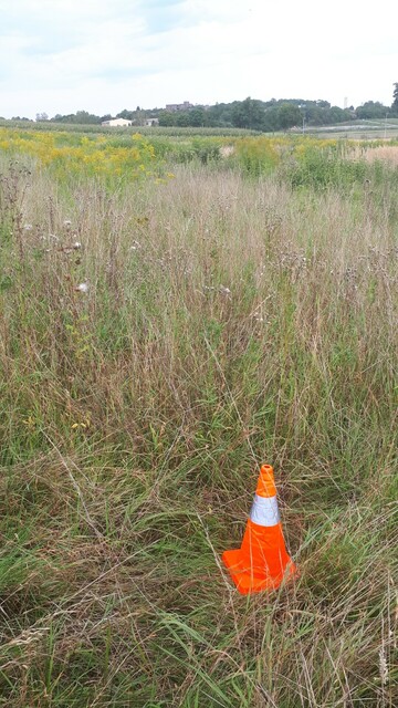 Um zu dem #Flächenschwerpunkt des #landkreiskelheim zu kommen, musste #Pylone sich durch dichte Brombeerhecken kämpfen. Er liegt mitten in einer Brache, mit leichtem Hang zum Biotop, am südlichen Rand von #Abensberg, westlich der Kreisstraße K 19. #Fahrrad #Radtour