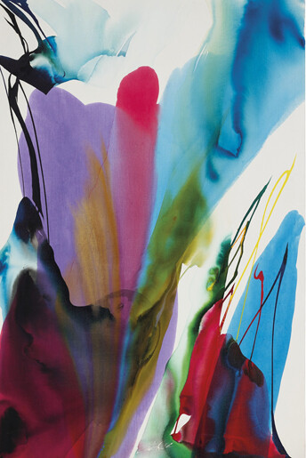 Paul Jenkins was an American abstract artist and member of the New York School. His innovative practice was to avoid the paintbrush altogether, instead allowing pigment to roll across the surface of his canvases to create fluid fields of color.
