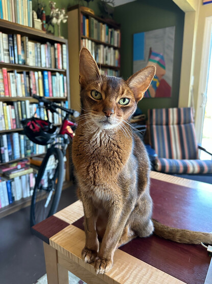 Nick’s giving me his opinion of the Supreme Court. We’re in agreement. #SCOTUS #catsofmastodon #abyssinian