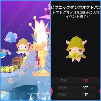 ピクニックダンボオクトパスちゃんGET♩ 1時間ごとにガチャれるのでイベント終了後のお魚も♩ #アビスリウム #taptapfish #abyssrium #ピクニックダンボオクトパス #aquarium