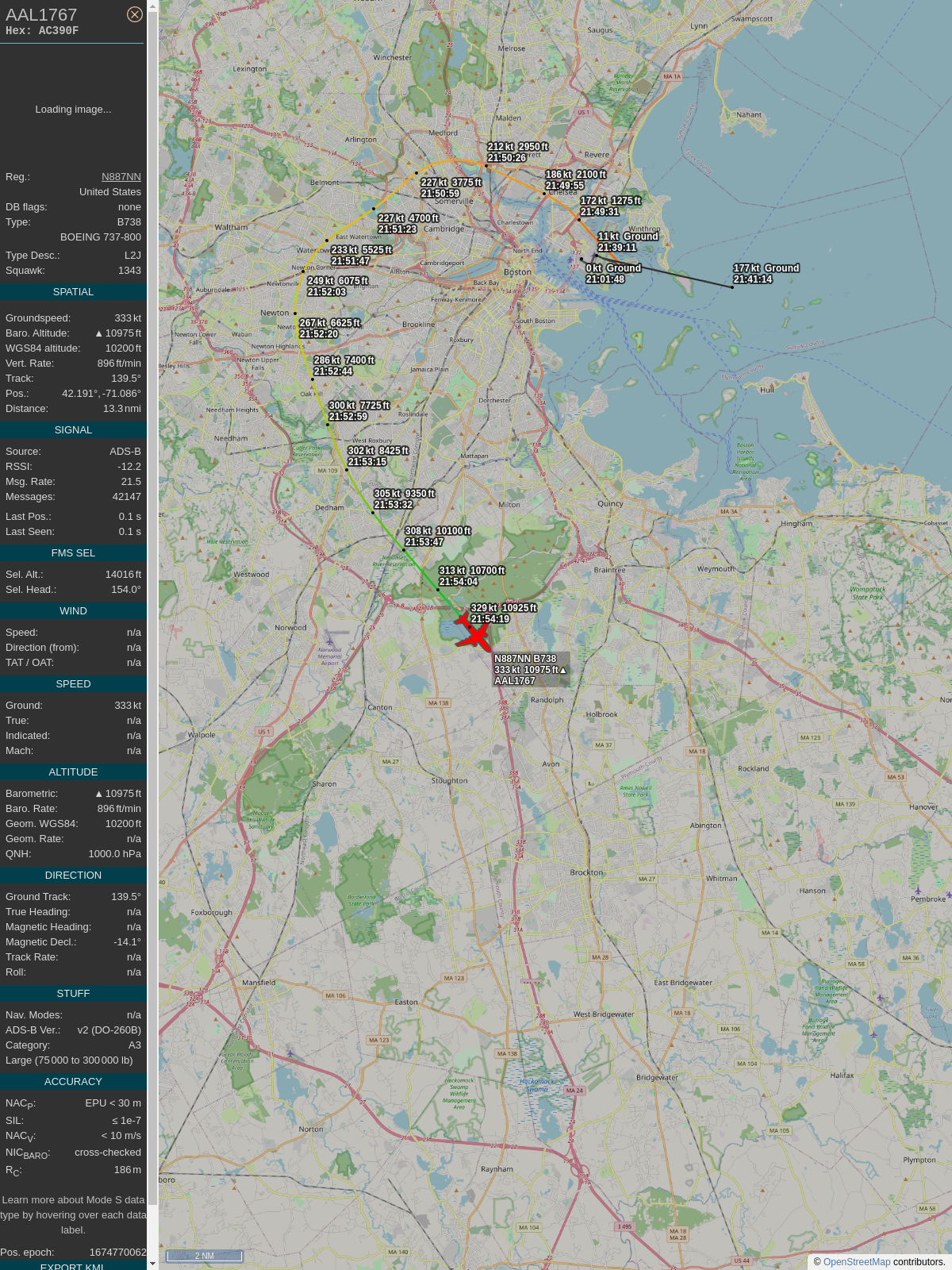 #ac390f #aal747 #americanairlines #bos #mia #planefence #adsb