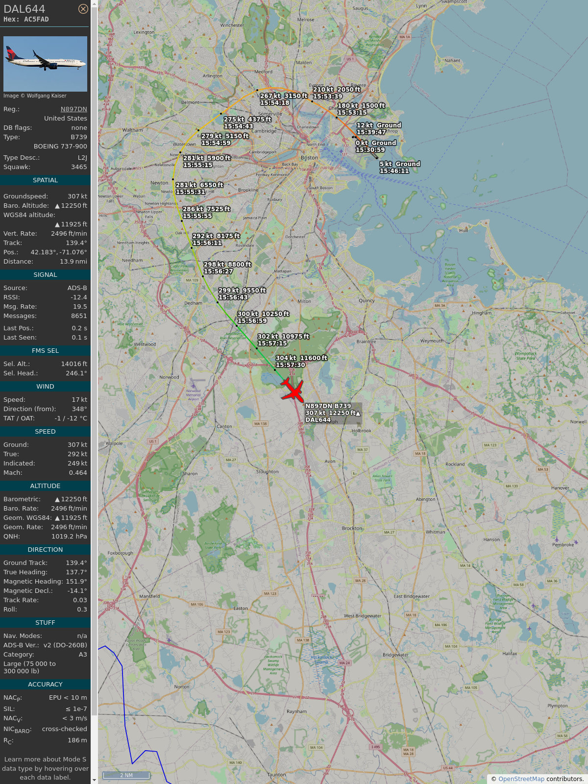 #ac5fad #dal1245 #deltaairlines #bos #mco #planefence #adsb