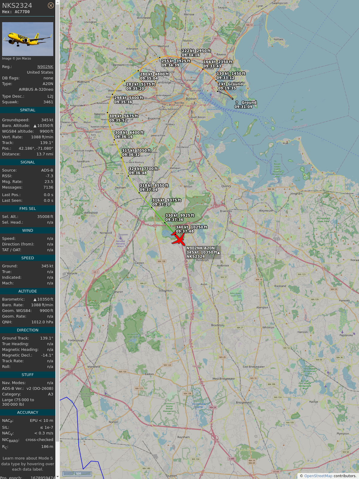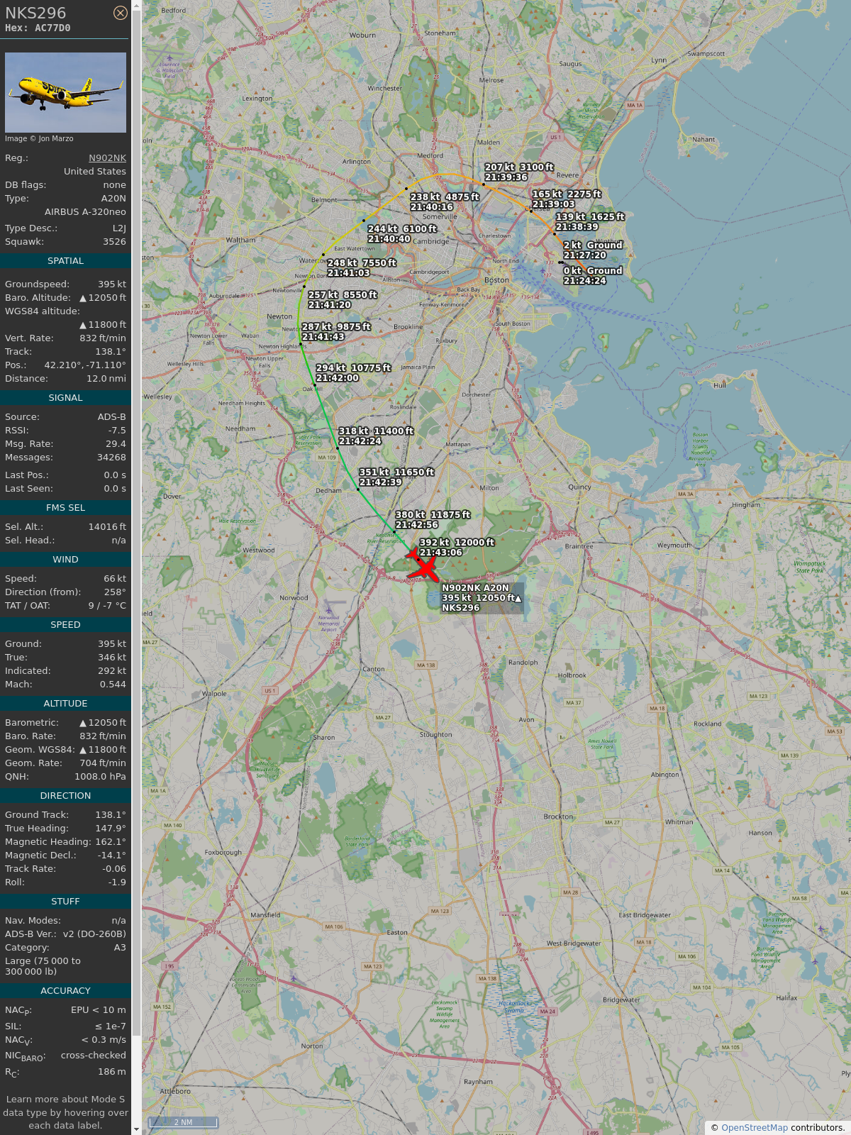 #ac77d0 #nks296 #spiritairlines #bos #fll #planefence #adsb