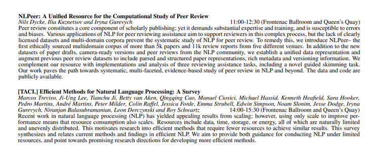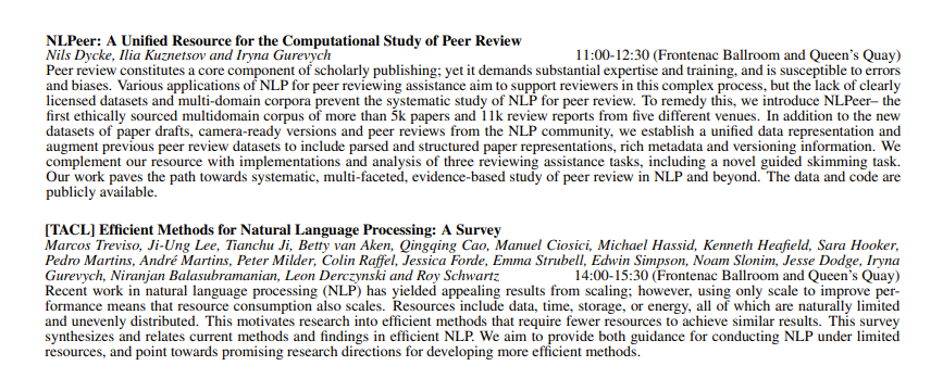 Good morning Toronto π¨π¦! Both events today at the 61st Annual Meeting of the Association for Computational Linguistics with participation of @UKPLab colleagues will take place at the Frontenac Ballroom and Queen's Quay and start at 11:00 and 14:00 respectively (CET 17:00 and 20:00). #ACL2023NLP