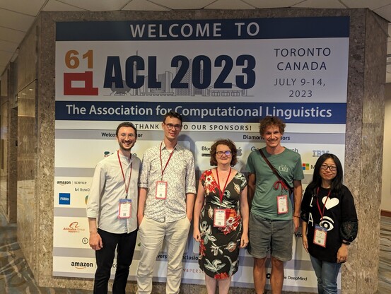 Our team in Toronto (left to right): Haritz Puerto, Nils Dycke, Iryna Gurevych, Andreas Waldis and Yufang Hou represent the Ubiquitous Knowledge Processing (UKP) Lab at the 61st Annual Meeting of the Association for Computational Linguistics π¨π¦ Follow them for more insights & impressions from the conference.