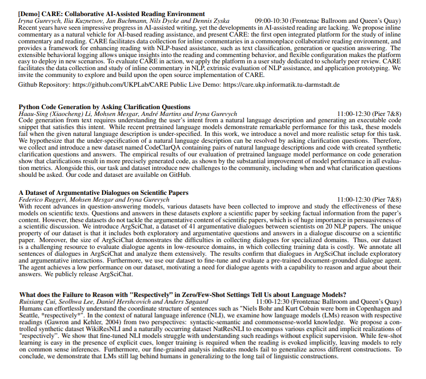 Good morning Toronto! π Today at #ACL2023NLP you can expect the following presentations with participation of @UKPLab colleagues, starting at 09:00 in the Frontenac Ballroom and Queen's Quay.
