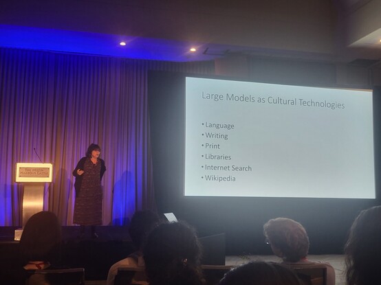 The keynote by @alisongopnik at #ACL2023NLP argues that we should think about LLMs differently: rather than (only) discussing about their intelligence, it is helpful to think of them as a new cultural technology that helps people accessing information.