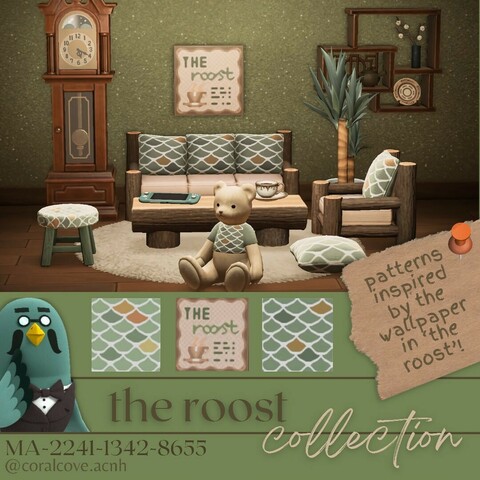 here they are!! i am so happy to release these three designs inspired by โthe roostโ wallpaper from the upcoming update ๐คโ๏ธ please tag me if you use these designs as i would love to see them ๐ฅบ MA-2241-1342-8655