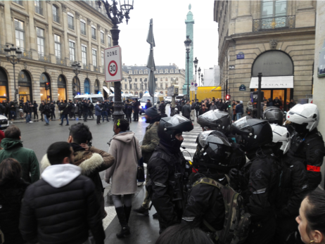 Après avoir vidé la place du Palais royal, les policiers et CRS nassent les manifestants rue de Rivoli.