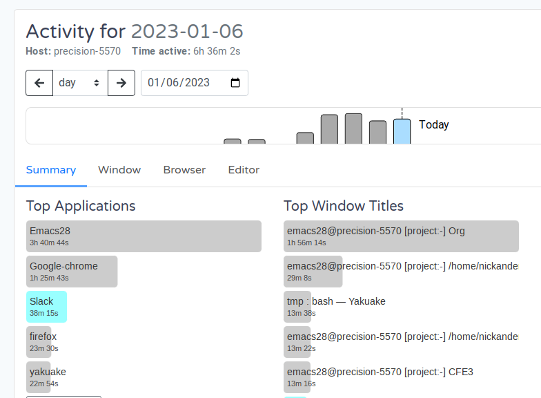 Collected some statistics about my #emacs usage, mostly from #activitywatch and #wakatime