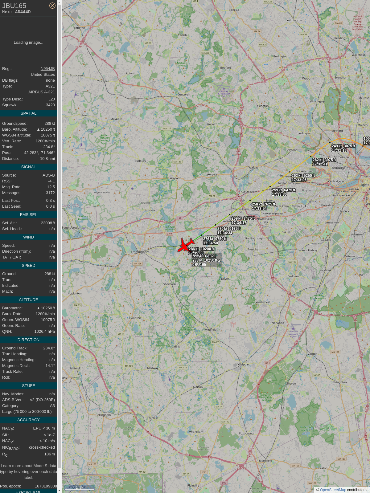 #ad444d #jbu1865 #jetblue #bos #rsw #planefence #adsb