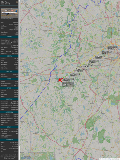 #ad444d #jbu771 #jetblue #bos #cun #planefence #adsb