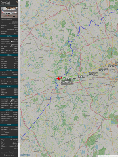 #ad4fe1 #aal2600 #americanairlines #bos #dfw #planefence #adsb