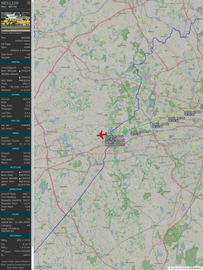 BLEEP BLOOP: I just saw an aircraft with callsign #NKS265 (ICAO code #AD574C) flying at 294 kt at altitude 6325 feet MSL at coordinates 34.1448,-118.4911.
