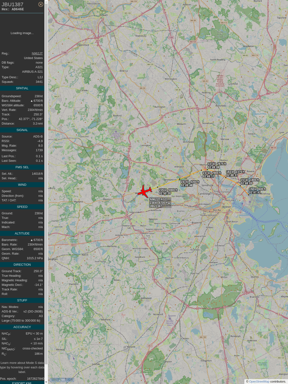 #ad646e #jbu1833 #jetblue #bos #sfo #planefence #adsb