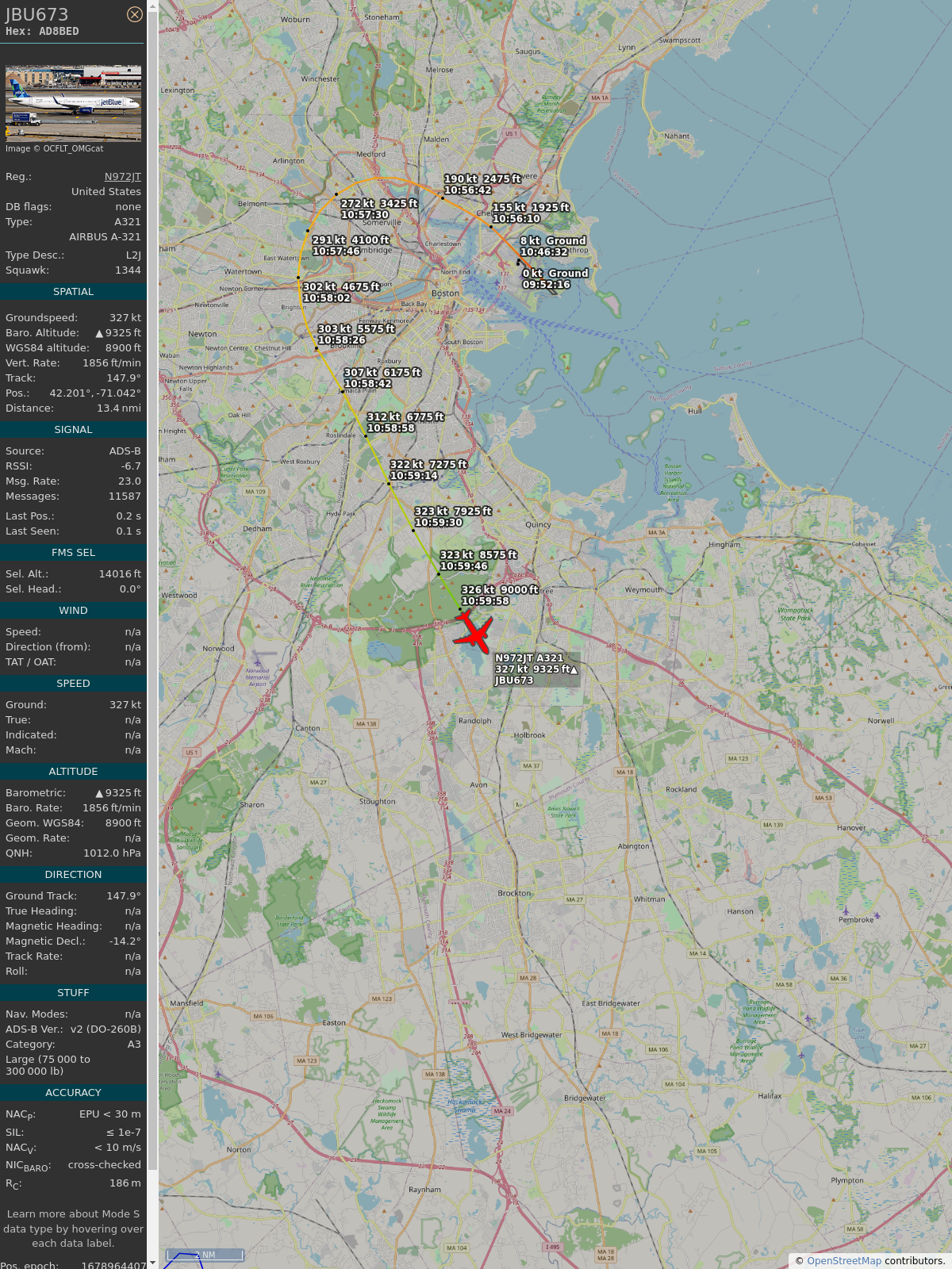 #ad8bed #jbu1023 #jetblue #bos #sti #planefence #adsb