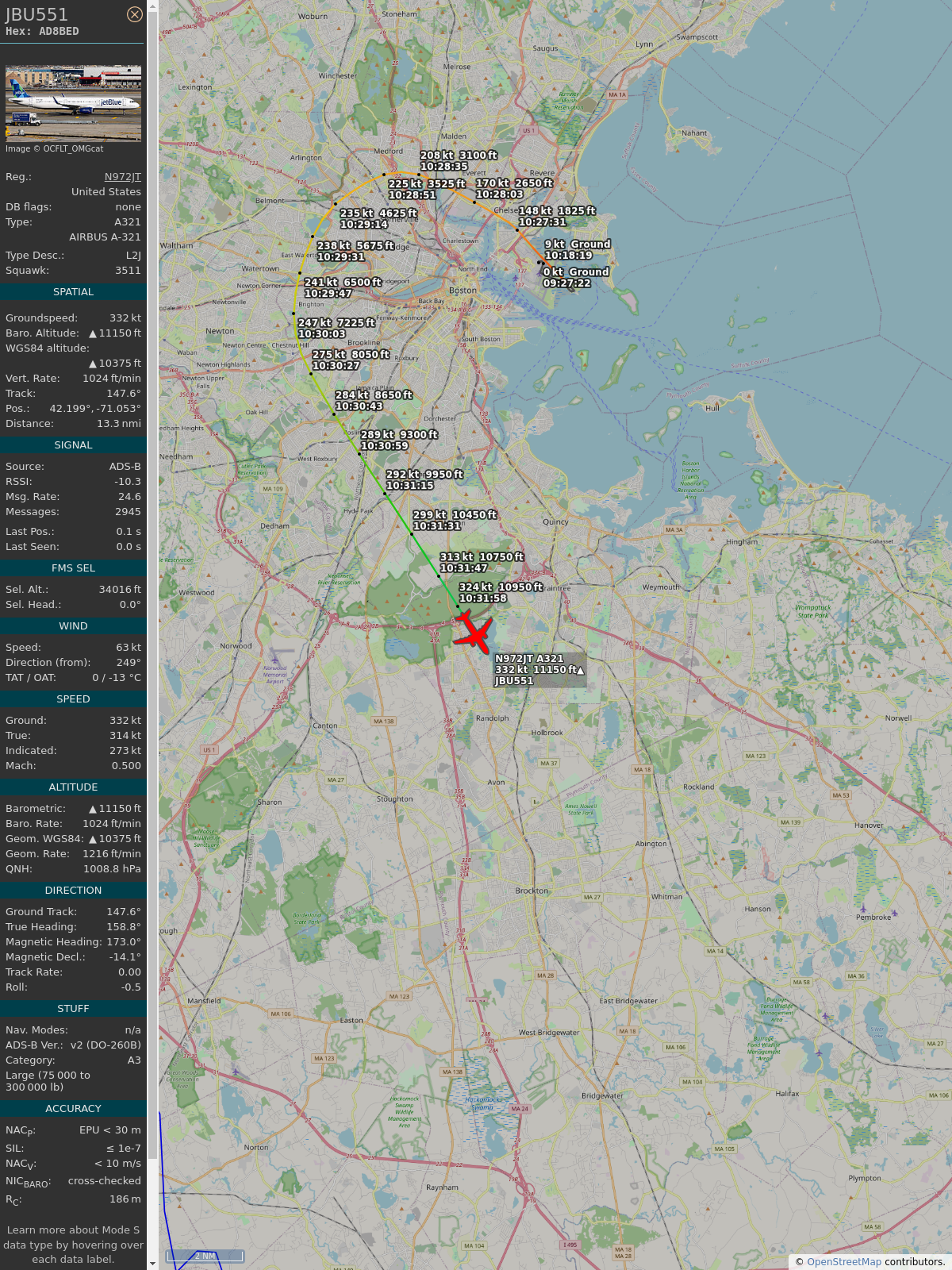 #ad8bed #jbu551 #jetblue #bos #mco #planefence #adsb