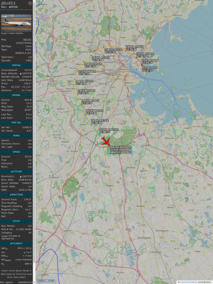 #ad935b #jbu1151 #jetblue #bos #mco #planefence #adsb