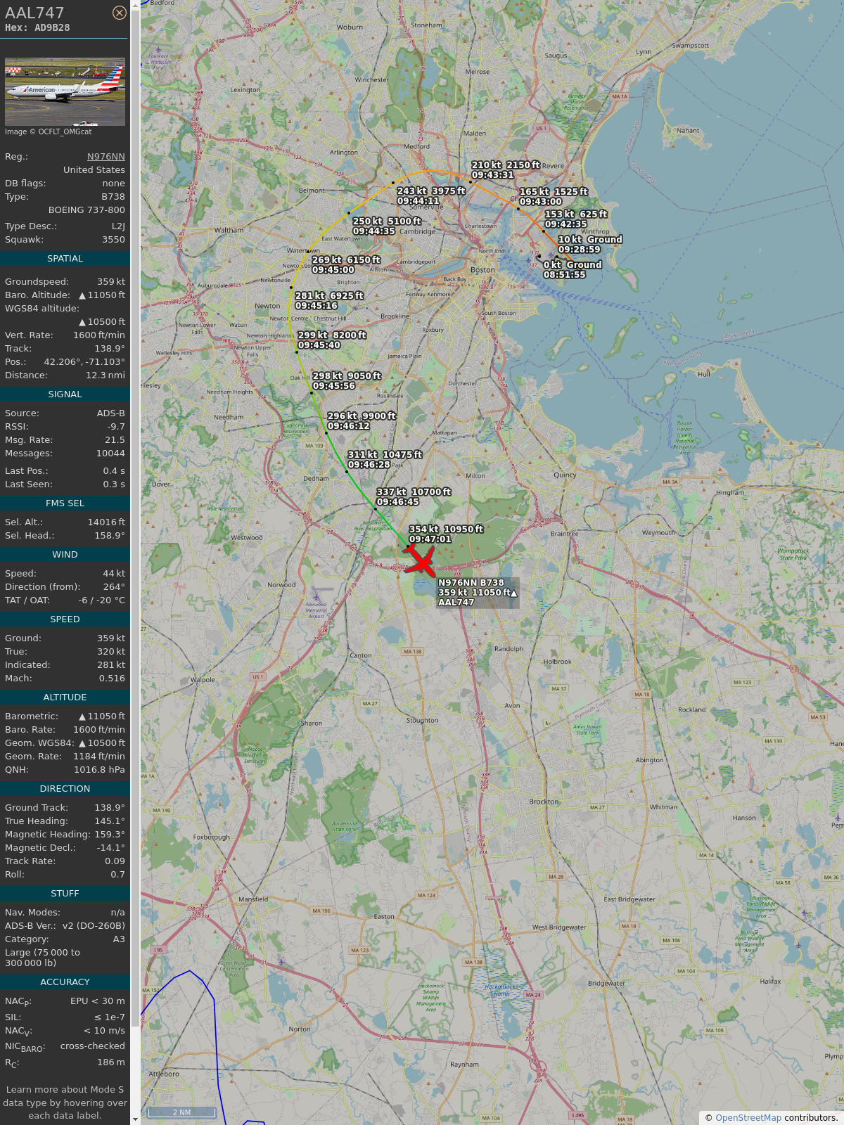#ad9b28 #aal747 #americanairlines #bos #mia #planefence #adsb