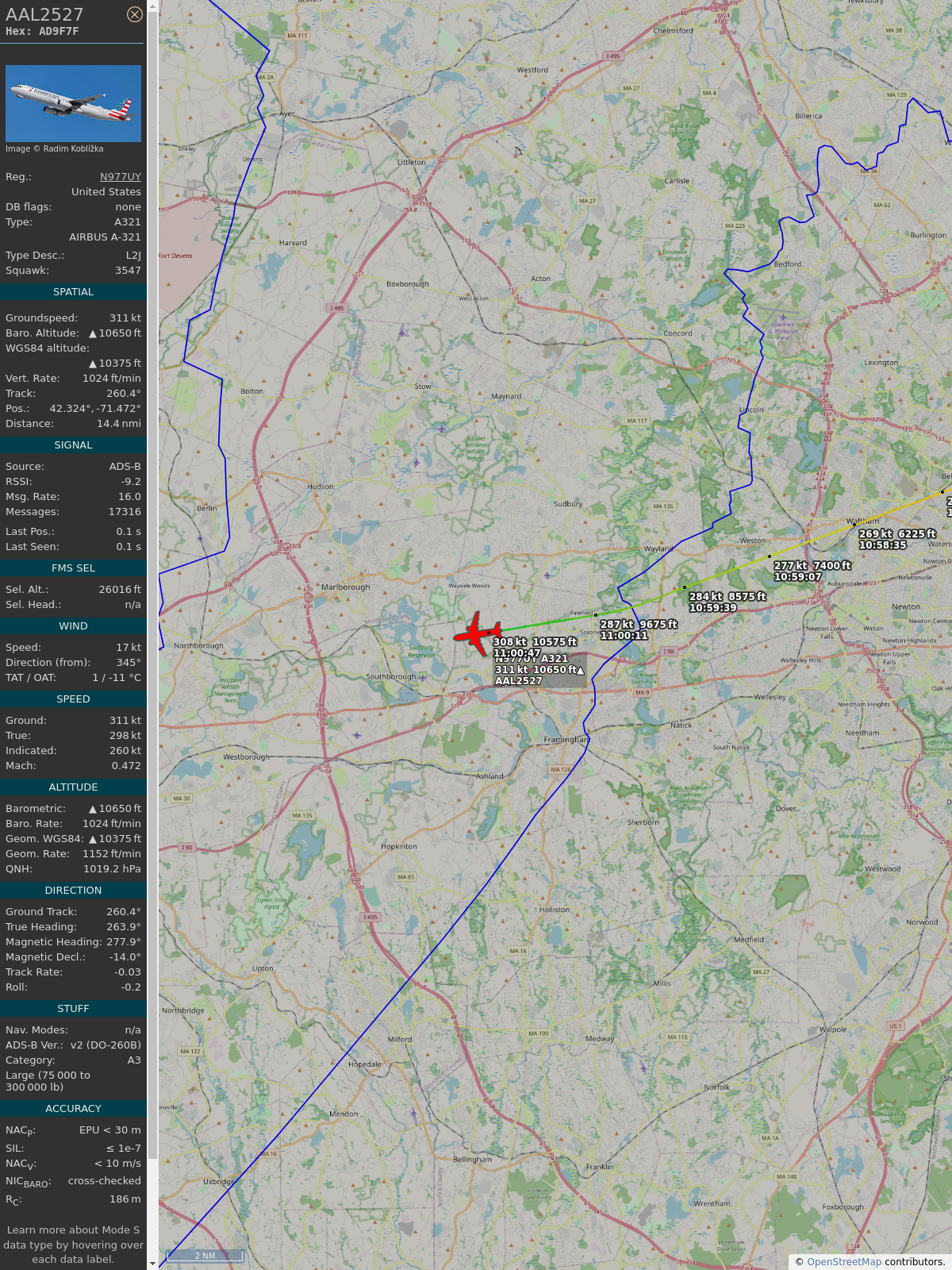 #ad9f7f #aal2527 #americanairlines #bos #dfw #planefence #adsb