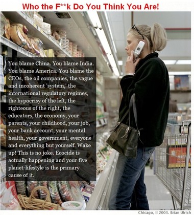 Everyone will blame everything and everyone else except their own lifestyle's need for these chemicals. An #Adbusters markup I did a few years ago called "Who the fuck do you think you are?"