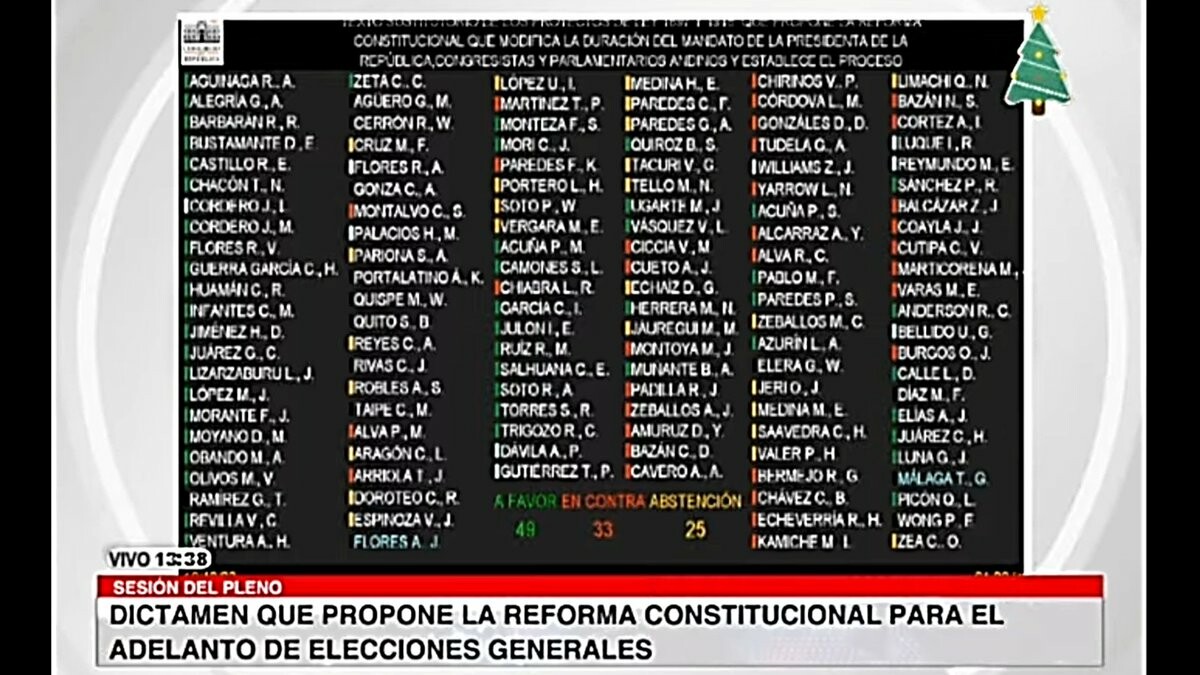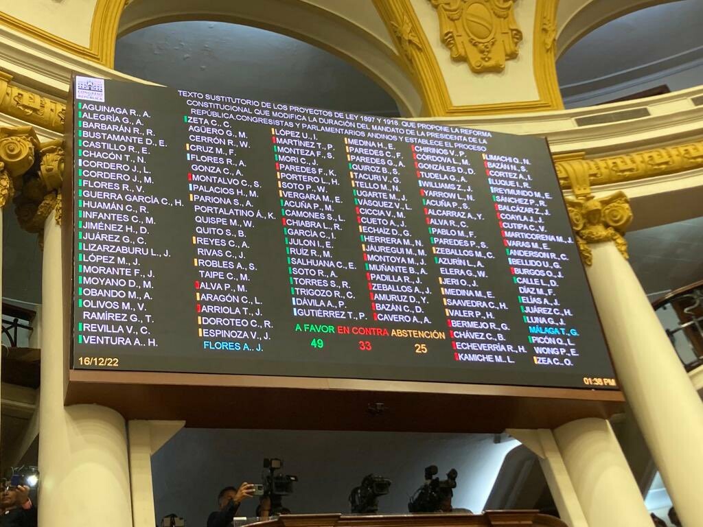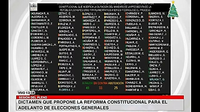 #URGENTE: el Congreso ha rechazado el #AdelantoDeElecciones para diciembre del 2023 por votos en contra principalmente de Renovaci贸n Popular y Avanza Pa铆s. Solo 49 votaron a favor. Se ha pedido una reconsideraci贸n, pero se ha suspendido la sesi贸n.