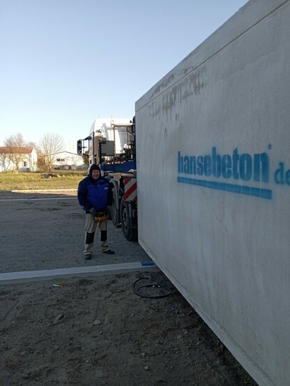 Du lieferst Stahlbeton-Fertiggaragen von unserem Werk in Syke (bei Bremen) zu unseren Kunden, stellst die Garagen auf und machst die Endmontage.