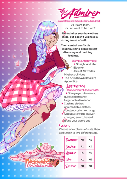 #ThirstySwordLesbians #PoweredByLesbians #AdmirerPlaybook #DarlingBatGames #ttrpg #ttrpgs