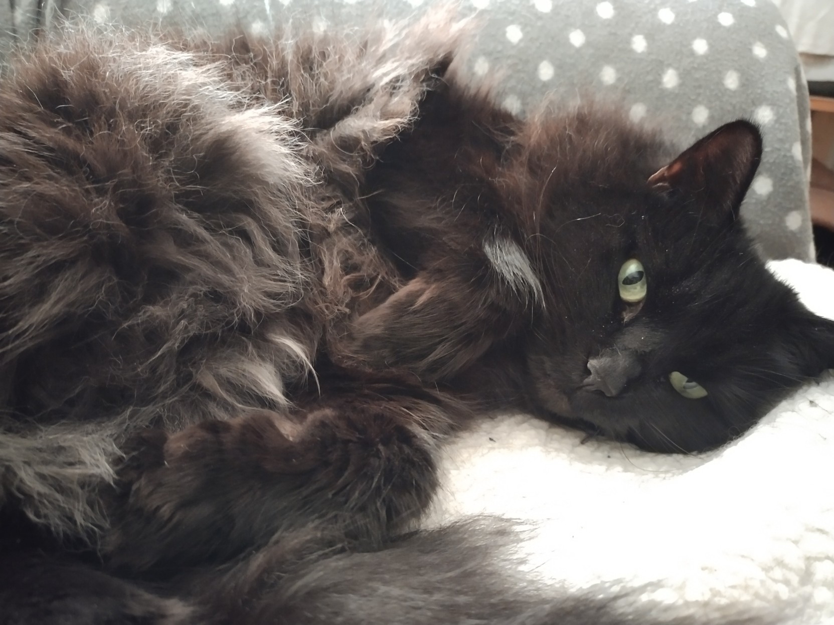 Now she can tell me what she likes, how she wants to be touched (not on her nails...), and chatters away at me all day. And she keeps my routine! My cuddle bug.