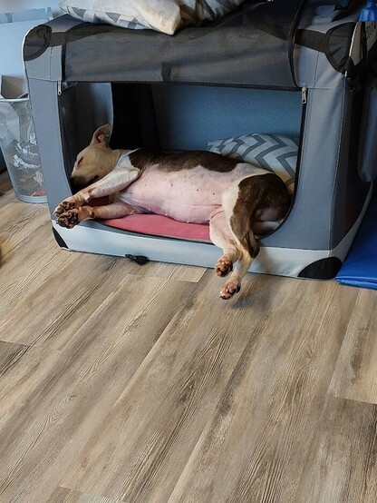 Ob es langsam Zeit wird unserer #amstaff Hündin 'Lucy' von den gefährlichen "Unterbett-Monstern" zu erzählen? Weiß doch eigentlich jedes Kind, dass es gefährlich ist, die Beine aus dem Bett ragen zu lassen.