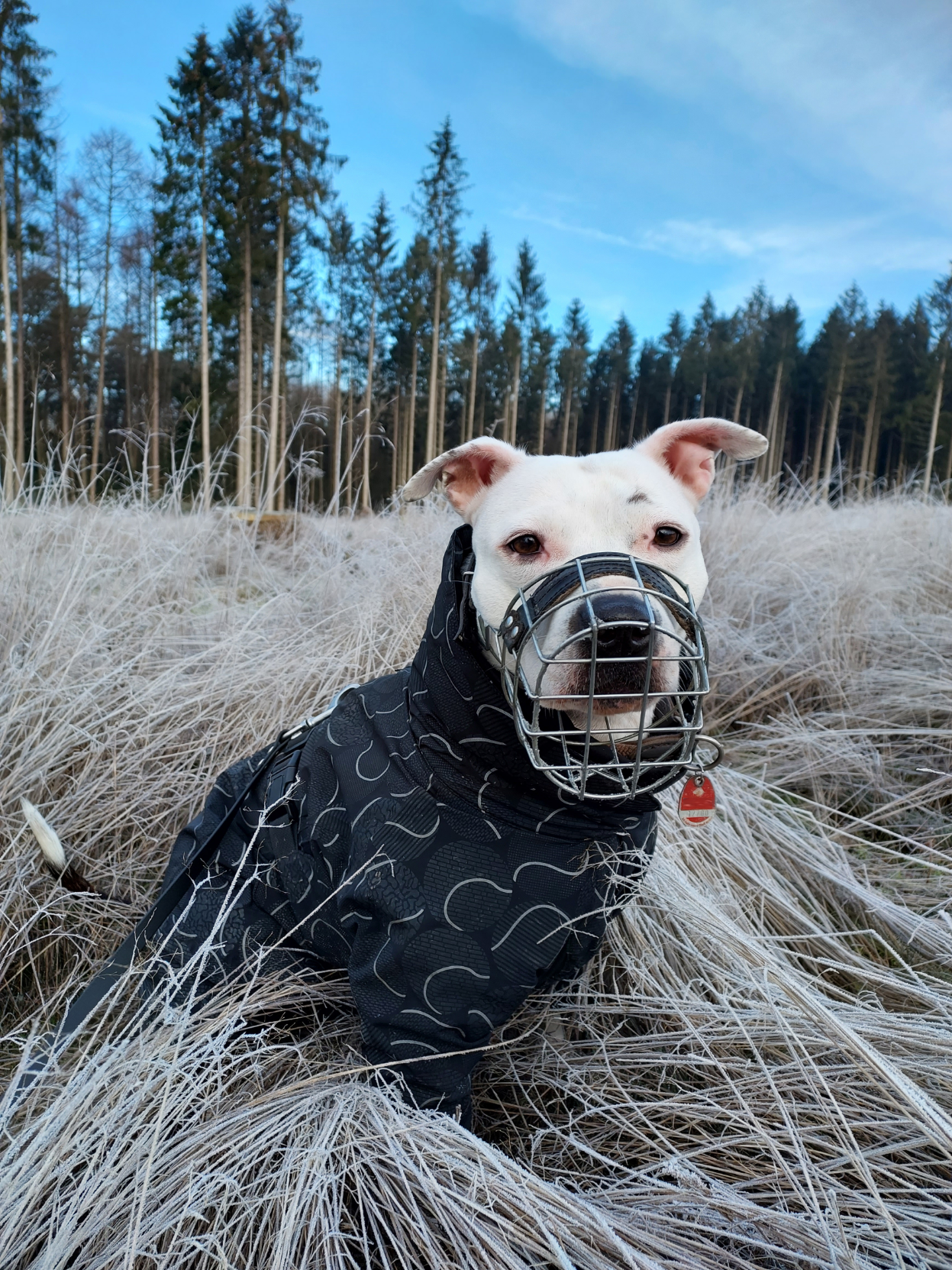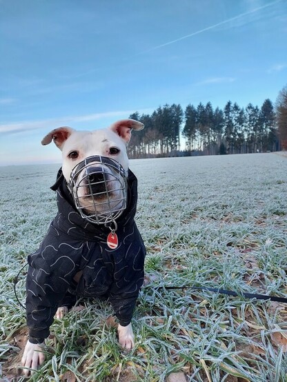 Frostig kalt war es heute am #Fotomontag ❄️ 🐶 . Was Lucy natürlich nicht davon abgehalten hat, die Nase trotzdem in den Schnee zu stecken. Wie man an den Resten im Maulkorb sieht. 🙂