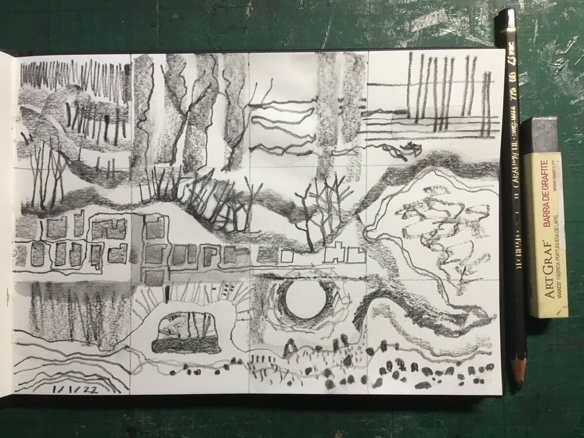 #drawing 3801 dark landscape remembered from a train journey #thedailysketch #solublegraphite #adrawingaday #adailydrawing