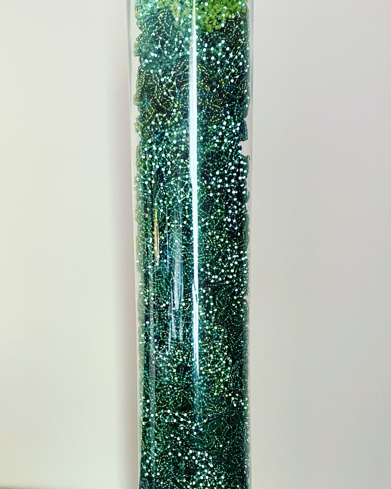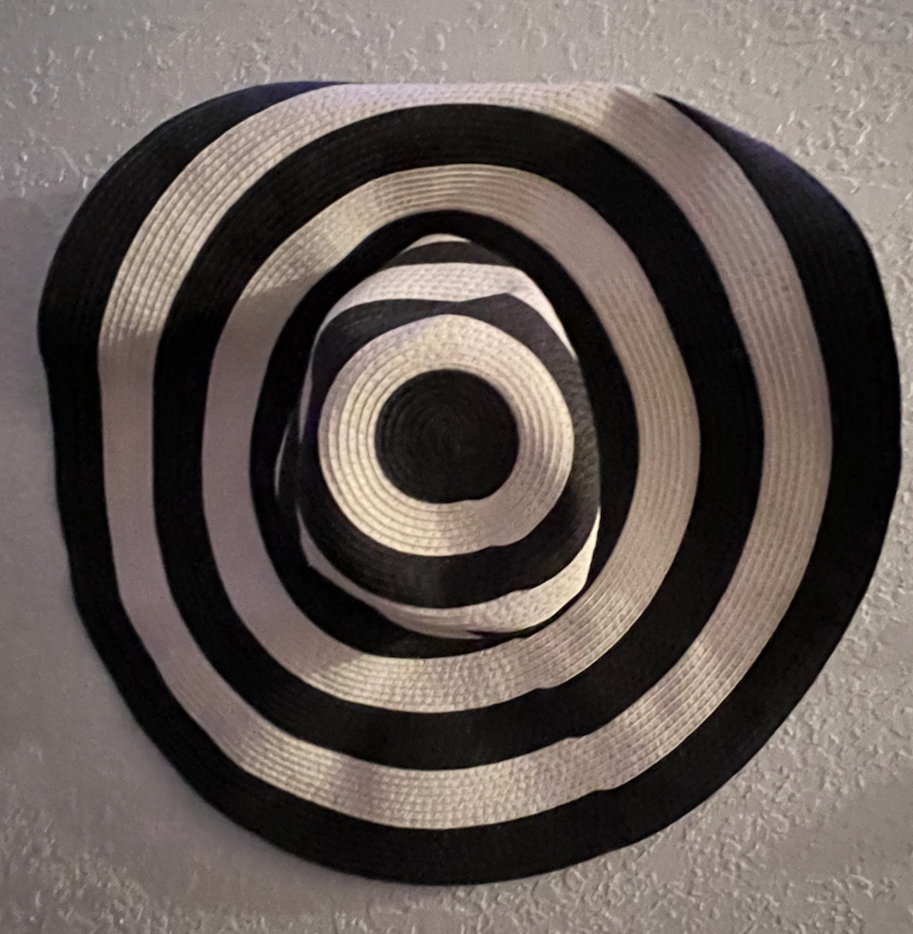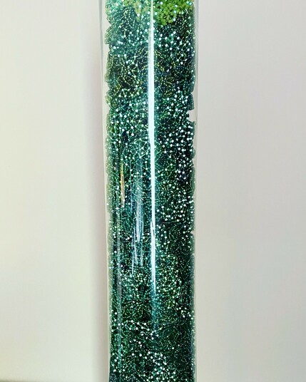 This one could be a bit challenging. "Biomass" is an abstract sculpture with biomorphic woven bead pieces that have been built up in layers in a glass cylinder. It is a celebration of the merits of organic carbon capture. I was so happy to pick it up from a show because I really like to live with this one.